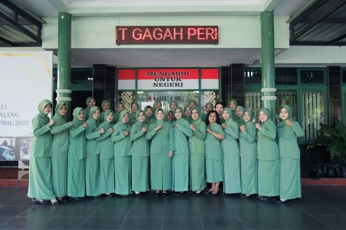 Lumajang, Wujud apresiasi terhadap dedikasi dan loyalitas prajurit, Ketua Persit KCK Cabang XXXV Kodim 0821/Lumajang, Ny. Nova Wijaya Koesuma, turut hadir dalam kegiatan laporan korps kenaikan pangkat periode 1 April 2025 yang dilaksanakan di halaman Makodim 0821 Lumajang. Selasa(8/4/2025).