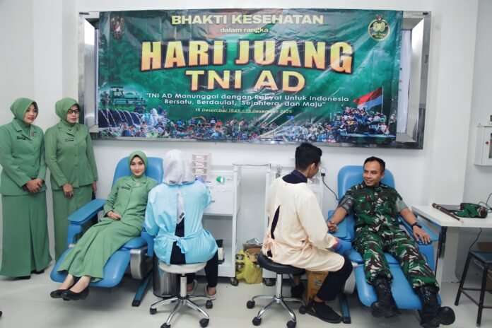 Lumajang — Kodim 0821/Lumajang menunjukkan kepeduliannya terhadap kemanusiaan dengan menggelar kegiatan Donor Darah dalam rangka memperingati Hari Juang Kartika ke-80 dan HUT Kodam V/Brawijaya ke-77. Kegiatan berlangsung di PMI Lumajang, Rabu (10/12/2025), dan diikuti oleh prajurit TNI, Persit KCK, mitra kerja, serta masyarakat umum.