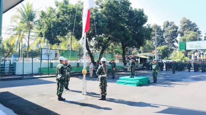 Lumajang – Kodim 0821/Lumajang melaksanakan upacara bendera tujuhbelasan yang dirangkaikan dengan korp raport pindah satuan, bertempat di halaman Makodim 0821/Lumajang, Jumat (17/10/2025). Kegiatan ini berlangsung khidmat dan penuh semangat nasionalisme, diikuti oleh seluruh prajurit dan PNS jajaran Kodim.