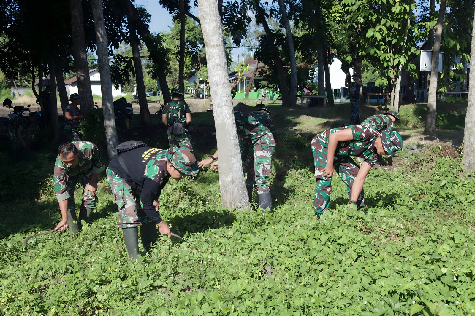 Dipimpin oleh Perwira Seksi Operasi (Pasi Ops) Kodim 0821/Lumajang, Kapten Cpl Husni Ahmad, seluruh personel melaksanakan apel kesiapan sebelum memulai kegiatan. Para prajurit membawa alat perorangan seperti cangkul, sabit, dan mesin babat rumput untuk menunjang kelancaran kerja bakti.