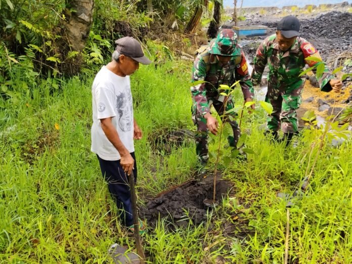 Kodim 0821/Lumajang Tanam 500 Bibit Pohon di Jugosari, Dalam Rangka Mitigasi Bencana Lereng Semeru