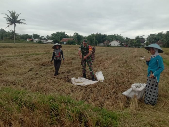 Lumajang, Dalam rangka mendukung program Upsus (Upaya Khusus) Ketahanan Pangan, Babinsa Rojopolo Koramil 0821/12 Jatiroto, Sertu Sugiyanto, bersama Petugas Penyuluh Lapangan (PPL) Deny Hariyanto, melaksanakan kegiatan pendampingan panen padi di lahan pertanian seluas 1 hektar milik Kelompok Tani “Asoka” di Dusun Kokapan, Desa Rojopolo, Kecamatan Jatiroto, Kabupaten Lumajang, Jawa Timur, pada Senin (19/8/2024).
