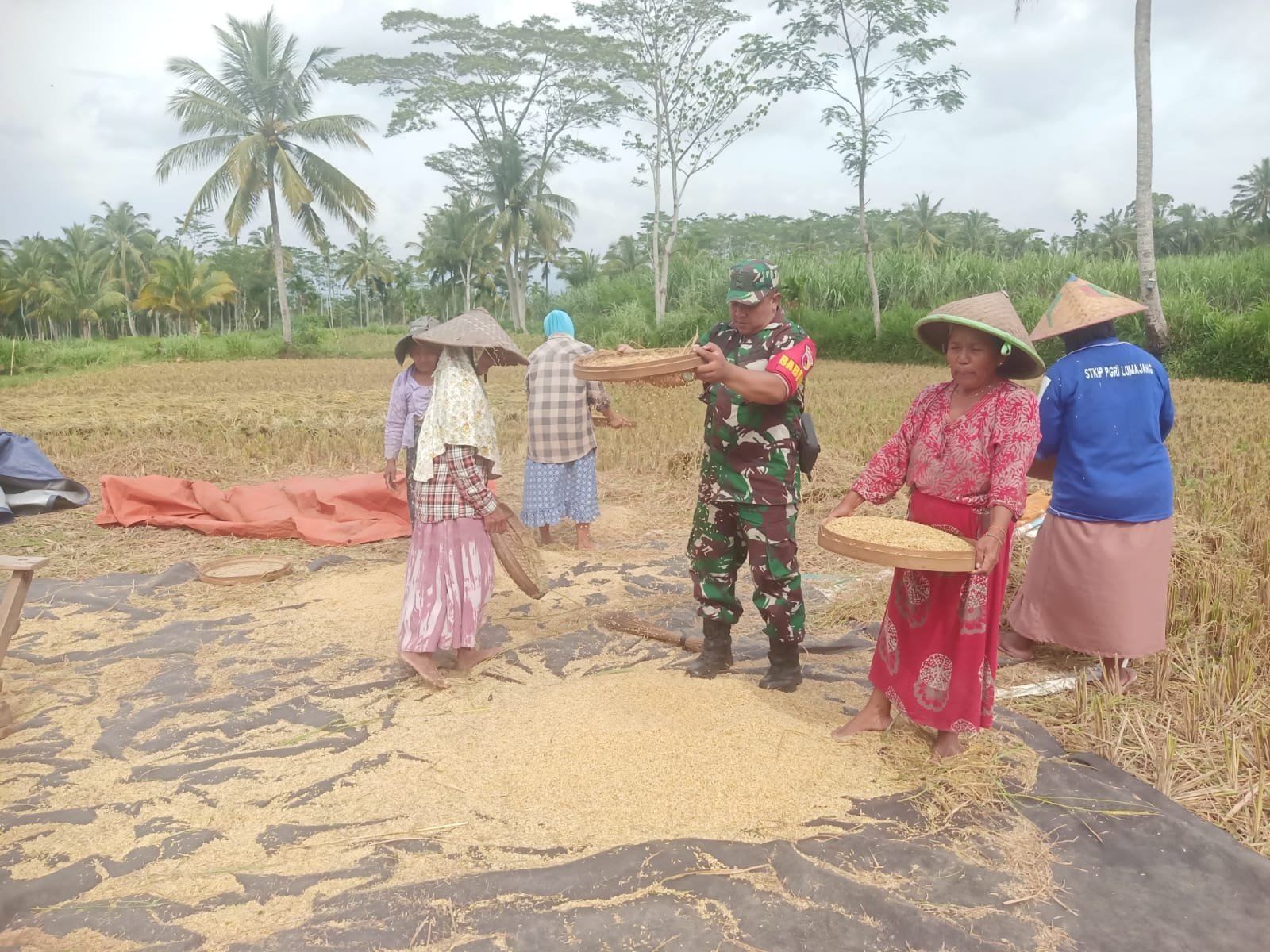 Lumajang, Dalam upaya mendukung ketahanan pangan nasional, Babinsa Kudus Koramil 0821-05/Klakah, Serda Agus Heri Lospala, melaksanakan pendampingan Serapan Gabah (Sergap) di lahan pertanian milik Umar Faruk, anggota Kelompok Tani Jati Tani, di Dusun Jatian RT 001 RW 003, Desa Kudus, Kecamatan Klakah, Kabupaten Lumajang, Jawa Timur, pada Kamis (3/4/2025).