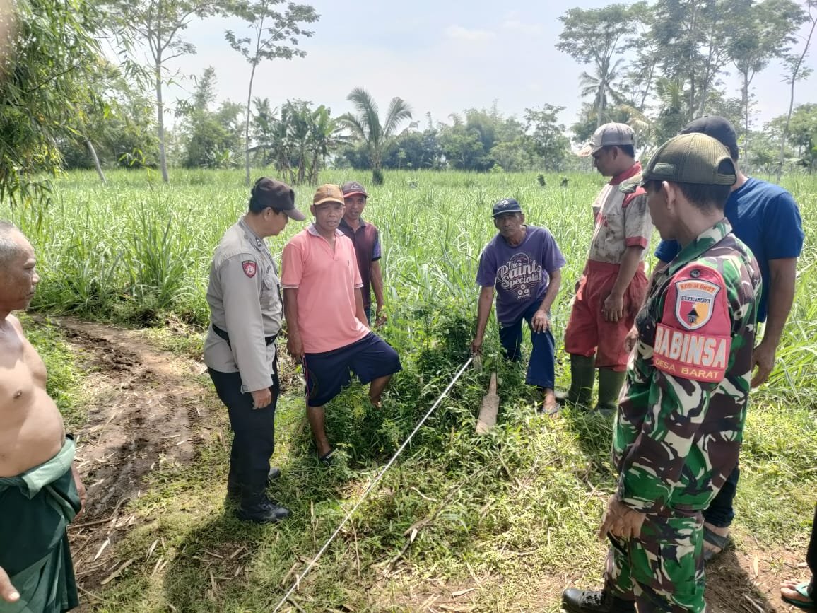 Lumajang, Dalam rangka mempererat sinergi antara TNI, Polri, dan masyarakat, Babinsa Barat Koramil 0821-20/Padang, Koptu Achmad Susanto, bersama Bhabinkamtibmas Desa Barat, melaksanakan kegiatan kerja bakti pembuatan patok pagar pembatas area kuburan di Dusun Tekik RT 08 RW 002, Desa Barat, Kecamatan Padang, Kabupaten Lumajang, Jawa Timur, pada Senin (27/10/2025).