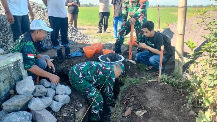 Lumajang, Dalam upaya mendukung perekonomian wilayah, Babinsa Kedungrejo Koramil 0821-16/Rowokangkung, Sertu Riono Asnan, dengan menghadiri kegiatan peletakan batu pertama pembangunan rumah produksi penggiling padi milik Badan Usaha Milik Desa (BUMDES) Kedungrejo Mulyo yang berlokasi di area Gerakan Pembangunan Bersama Rakyat (Gerbas) Desa Kedungrejo, Kecamatan Rowokangkung, Kabupaten Lumajang, Jawa Timur, pada Jumat (30/5/2025)