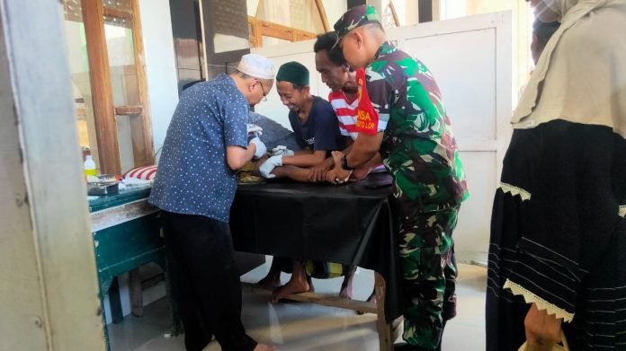 Lumajang, Dalam rangka memperingati Hari Raya Idul Adha 1445 H, Babinsa Kaliboto Lor, Koramil 0821/12 Jatiroto, Serda Syafiudin, melaksanakan pendampingan kegiatan khitanan massal di Masjid Baitul Mutohirin, Dusun Krajan 1 RT 016 RW 003, Desa Kaliboto Lor, Kecamatan Jatiroto, Kabupaten Lumajang, Jawa Timur, Senin (17/6/2024)