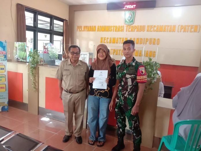 Lumajang, Dalam rangka memperingati Hari Juang TNI AD ke-79 dan HUT ke-76 Kodam V/Brawijaya Tahun 2024, Babinsa Kloposawit Koramil 0821-09/Candipuro, Serda Moh. Dedik Indra Irawan, melaksanakan pendampingan pembuatan akta kelahiran gratis bagi masyarakat di Kantor Kecamatan Candipuro, Kabupaten Lumajang, Jawa Timur, pada Rabu (11/12/2024).
