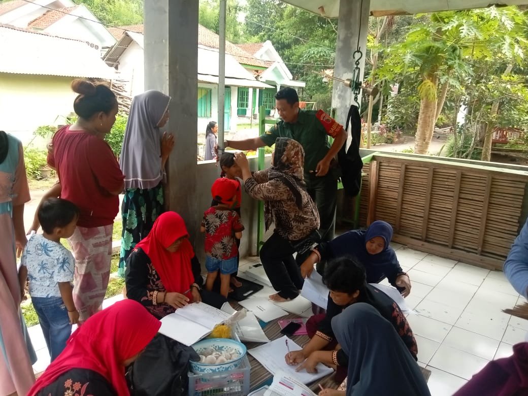 Lumajang, Sinergi antara Babinsa Mojo dari Koramil 0821/20 Padang, Serda Muhammad Sholeh Ridwan, dampingi bidan desa Mojo melaksanakan monitoring kesehatan warga melalui kegiatan pelayanan Posyandu di Krajan RT 002 RW 005 Desa Mojo, Kecamatan Padang, Kabupaten Lumajang, Jawa Timur. Pada hari Senin (1/7/2024).