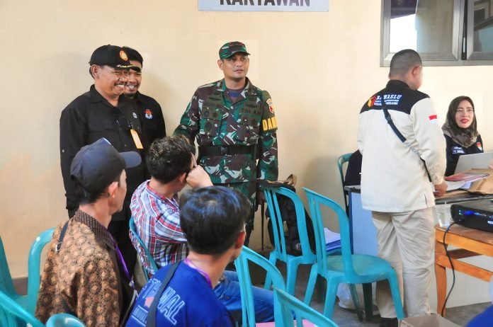 Saat melaksanakan pemantauan, Dandim 0821/Lumajang Letkol Czi Gunawan Indra Y. T., S.T., M.M., memberikan arahan terhadap personel yang melaksanakan pengamanan rapat pleno terbuka rekapitulasi penghitungan suara Pemilu Tahun 2024 agar selalu melakukan pengawasan dan pengecekan terhadap orang yang keluar masuk ruangan pleno.