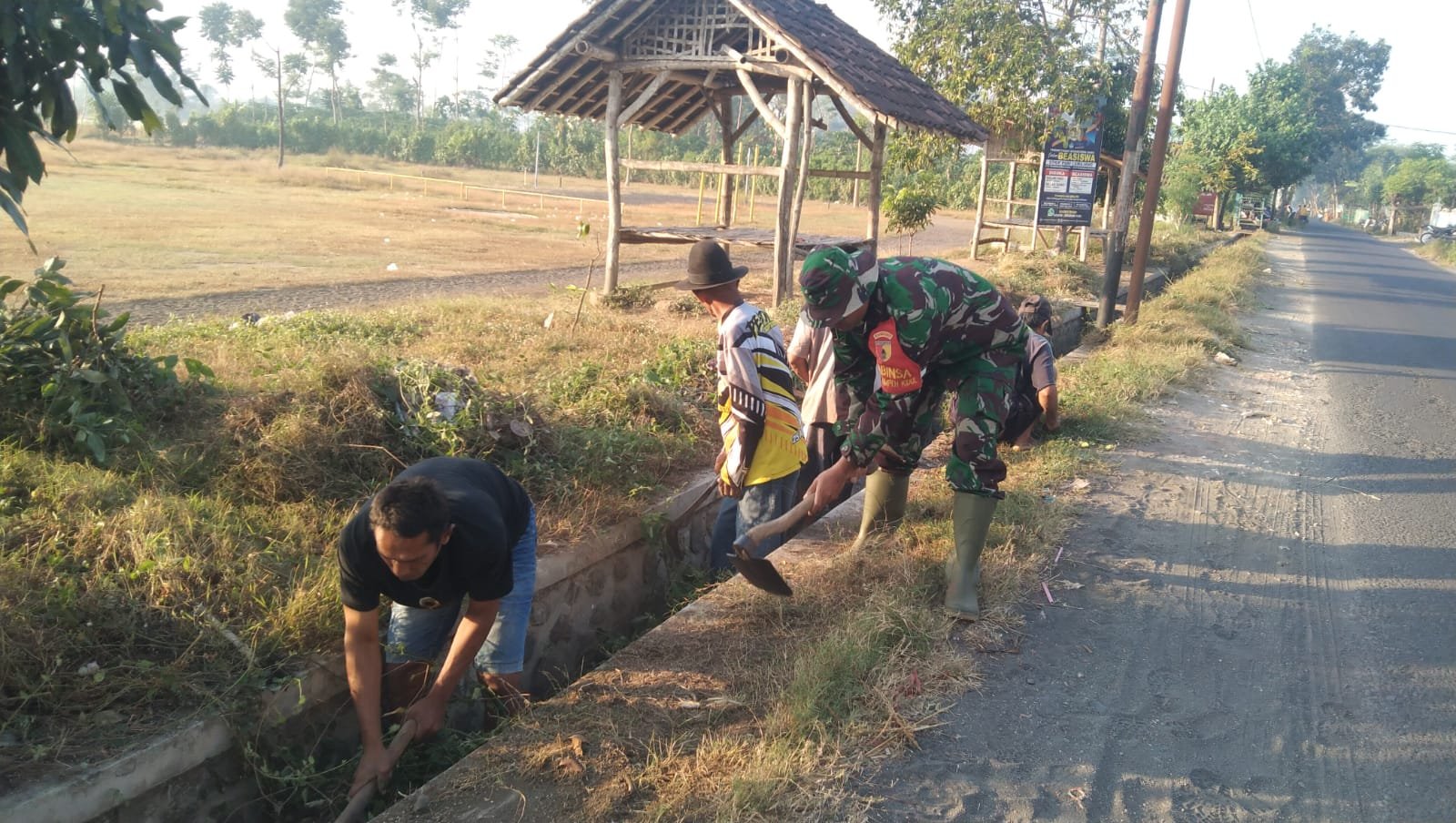 Lumajang – Babinsa Tempeh Kidul Koramil 0821-10/Tempeh, Serka Zainul Arifin, bersama warga Dusun Ngebruk melaksanakan kegiatan gotong royong pembersihan selokan di sepanjang Jalan Dusun Ngebruk RT 007, 008, dan 009 RW 002, Desa Tempeh Kidul, Kecamatan Tempeh, Kabupaten Lumajang Jawa Timur, pada Minggu (29/9/2024).