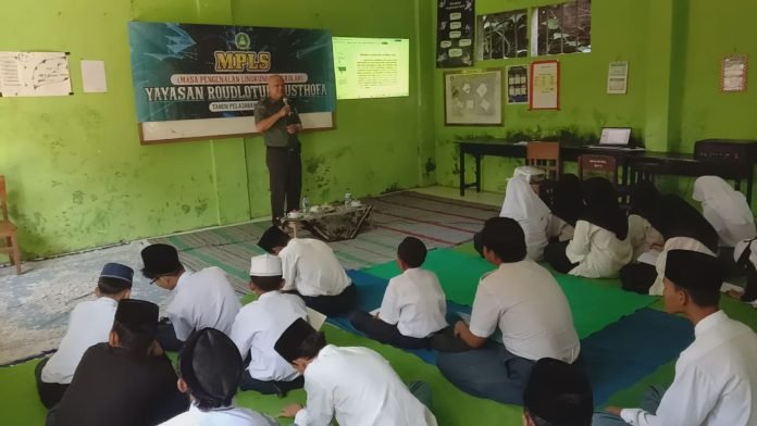 Lumajang, Dalam rangka Masa Pengenalan Lingkungan Sekolah (MPLS) peserta didik baru, kegiatan Wawasan Kebangsaan (Wasbang) dilaksanakan di SMA Roudlotul Musthofa, Dusun Watukandang, Desa Penanggal, Kecamatan Candipuro, Kabupaten Lumajang, Jawa Timur, pada Rabu (17/7/2024). Kegiatan tersebut diinisiasi oleh Danramil 0821/09 Candipuro, Lettu Inf Sudirman Murwahidin, yang berharap melalui pemberian materi Wasbang dapat membentuk karakter para siswa untuk mencintai tanah air, bangsa, dan Negara Kesatuan Republik Indonesia (NKRI).