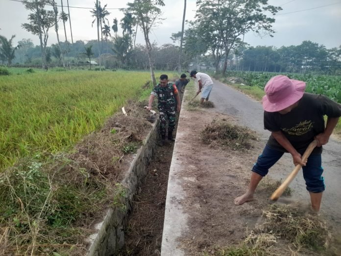 Lumajang, Dalam upaya menjaga kelancaran irigasi dan mendukung ketahanan pangan, Babinsa Mojosari Koramil 0821/19 Sumbersuko, Sertu Imam Nawawi, memimpin kegiatan Karya Bakti Pembersihan Saluran Irigasi sepanjang 200 meter, di Dusun Darungan RT 034 RW 006 Desa Mojosari Kecamatan Sumbersuko, Kamis (1/8/2024).