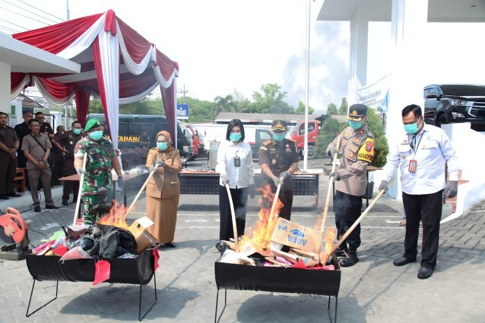 Lumajang – Dandim 0821/Lumajang Letkol Inf Ronny Wijaya Koesuma, menghadiri kegiatan pemusnahan barang bukti dari perkara tindak pidana umum yang telah berkekuatan hukum tetap (inkracht) tahun 2024 bertempat di halaman kantor Kejaksaan Negeri Lumajang Jalan Brigjend Slamet Riyadi No. 131 Tompokersan Kecamatan Lumajang Kabupaten Lumajang, Senin (23/9/2024).