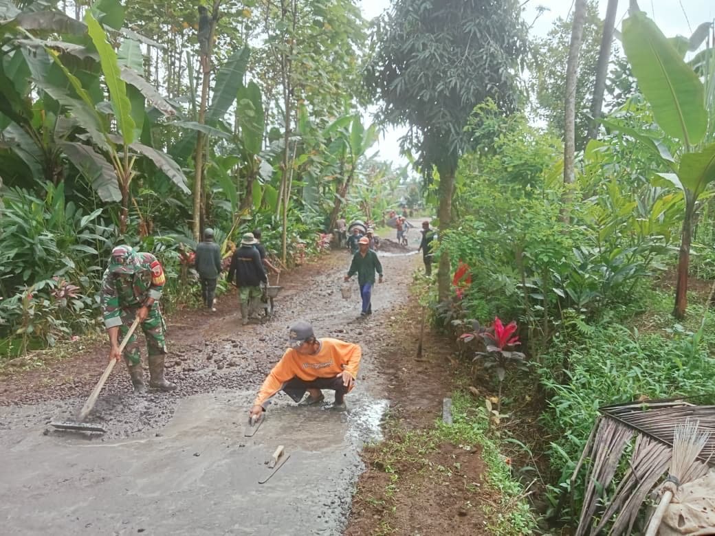 Lumajang – Wujud nyata kepedulian terhadap pembangunan wilayah binaan, Babinsa Bedayu Koramil 0821-03/Senduro Sertu Sularso melaksanakan pendampingan kegiatan karya bakti pengecoran jalan sepanjang kurang lebih 500 meter di Dusun Sumberrejo RT 003 RW 004 Desa Bedayu Kecamatan Senduro Kabupaten Lumajang, Jawa Timur, pada Sabtu (21/2/2026).