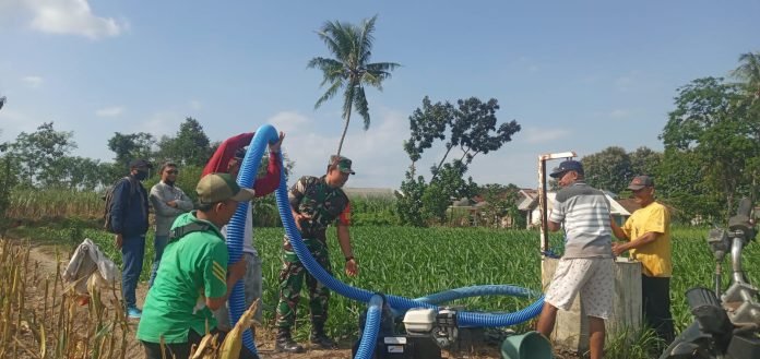 Lumajang, Babinsa Gesang Koramil 0821-10/Tempeh, Serda Muhammad Eko Widodo, melaksanakan pendampingan pengairan di lahan jagung seluas 1 hektare milik Gendut, anggota Kelompok Tani (Poktan) Sidomulyo, di Dusun Kebonan, Desa Gesang, Kecamatan Tempeh, Kabupaten Lumajang, Jawa Timur, Minggu (1/12/2024).