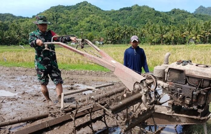 Lumajang – Komitmen dalam mendukung Hanpangan lokal, Babinsa Tegalrejo Koramil 0821-18/Tempursari, Serda Hartono, melaksanakan pendampingan pengolahan lahan dan tanam padi di lahan milik Safrudin, anggota Kelompok Tani Tegalsari III, yang berlokasi di Dusun Tegalsari, Desa Tegalrejo, Kecamatan Tempursari, Kabupaten Lumajang, Jawa Timur, pada Rabu (7/1/2026).