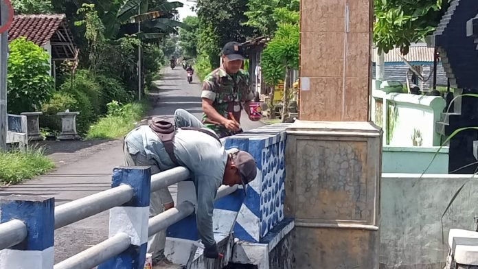 Pengecatan Tembok Jembatan di Dusun Magersari: Wujud Gotong Royong TNI dan Warga