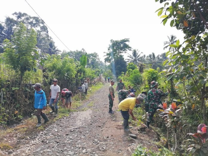 Penyiapan Pembangunan Rabat Beton, TNI Koramil Pasrujambe Bersama Warga Kerja Bakti Pembersihan Jalan