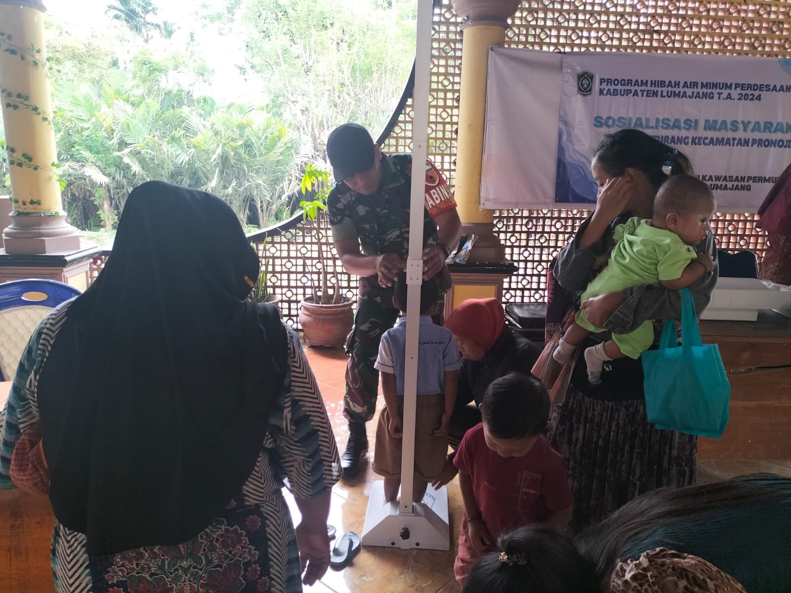 Lumajang, Sebagai wujud dukungan terhadap kesehatan masyarakat, Babinsa Supiturang Koramil 0821-14/Pronojiwo, Serda Sigit Andi Irawan, bersama Polindes Desa Supiturang, melaksanakan pendampingan dalam kegiatan pelayanan Posyandu di kantor desa. Kegiatan tersebut bertujuan untuk mendorong partisipasi aktif masyarakat, khususnya ibu hamil dan balita, agar rutin memeriksakan kesehatan mereka.