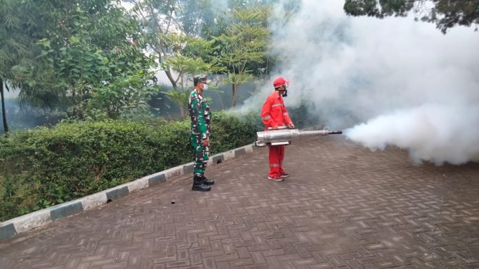 Lumajang, Dalam upaya mencegah penyebaran penyakit Demam Berdarah Dengue (DBD), Babinsa Kebonsari Koramil 0821-11/Yosowilangun, Serka Sriyono, mendampingi kegiatan fogging yang dilakukan oleh tim Puskesmas Yosowilangun di Dusun Krajan RT 001 RW 001, Desa Kebonsari, Kecamatan Yosowilangun, Kabupaten Lumajang, pada Minggu (23/2/2025).