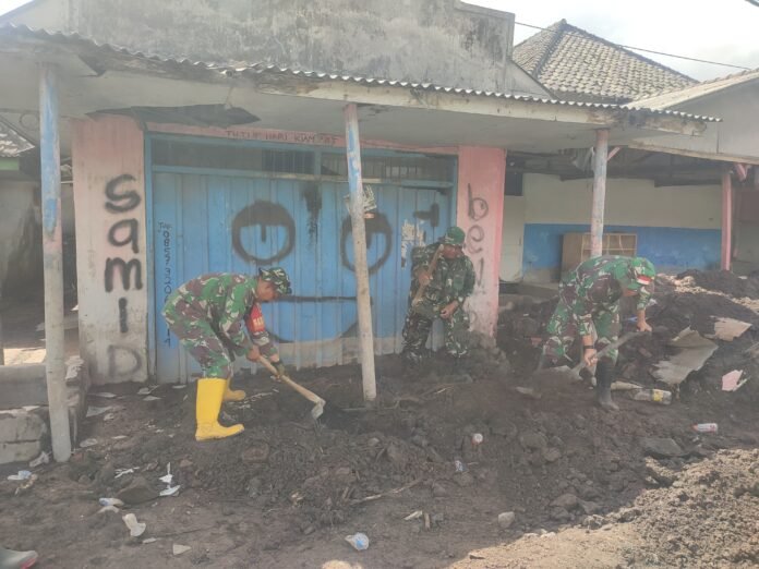Lumajang — Pemulihan pasca bencana lahar dingin Semeru terus dilakukan oleh jajaran TNI di berbagai titik wilayah terdampak. Pada Kamis (11/12/2025), Babinsa Lempeni Koramil 0821-10/Tempeh, Serda Heru Cokro Setio Budi, bersama personel lainnya, kembali turun tangan melakukan pembersihan material lahar dingin yang menumpuk di rumah-rumah warga di Dusun Gumukmas, Desa Supiturang, Kecamatan Pronojiwo.