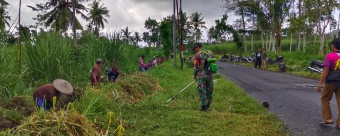 BerandaTNIPererat Gotong Royong, Babinsa Bago Dampingi Warga Bersihkan Sekolah dan Jalan