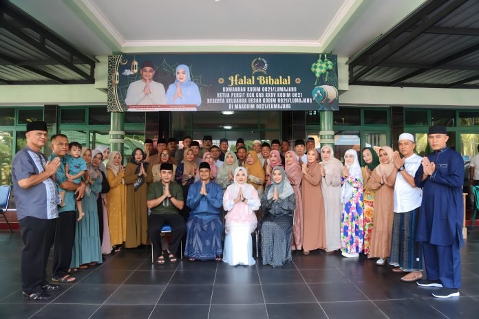 Lumajang, Kodim 0821/Lumajang melaksanakan acara halal bihalal, Kegiatan halal bihalal dipimpin langsung oleh Dandim 0821/Lumajang Letkol Czi Gunawan Indra Y.T., S.T., M.M., dan dihadiri oleh seluruh anggota militer dan PNS serta Persit, bertempat di Halaman Makodim 0821/Lumajang, Rabu (10/4/2024).