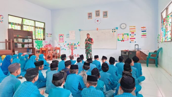Lumajang – Semangat kebangsaan terus ditanamkan kepada generasi muda melalui kegiatan Pondok Ramadan di SDN Sruni 02. Babinsa Sruni Koramil 0821-05/Klakah, Serka Muhammad Nimin, melaksanakan kegiatan Wawasan Kebangsaan (Wasbang) kepada para siswa di Dusun Krajan RT 003 RW 002 Desa Sruni Kecamatan Klakah Kabupaten Lumajang, Jawa Timur, Kamis (5/3/2026).
