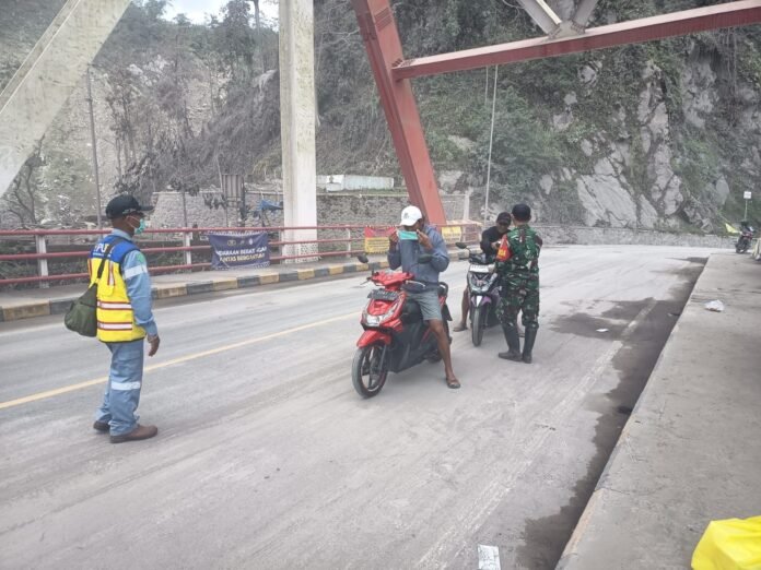 Lumajang — Upaya menjaga keamanan dan kelancaran aktivitas masyarakat di kawasan rawan terdampak erupsi Semeru terus dilakukan oleh personel Kodim 0821/Lumajang. Pada Sabtu (6/12/2025), anggota Koramil 0821-09/Candipuro kembali melaksanakan penyekatan serta pengaturan lalu lintas di area Jembatan Besuk Kobokan, yang menjadi salah satu jalur vital penghubung antarwilayah.