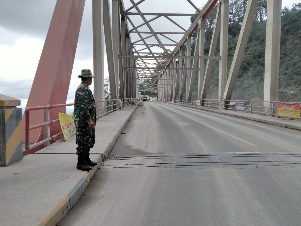 Jembatan Besuk Kobokan yang merupakan akses vital penghubung wilayah terdampak, menjadi salah satu lokasi dengan tingkat kerawanan tinggi akibat material sisa erupsi dan potensi lahar dingin. Guna mengantisipasi gangguan keamanan maupun hambatan lalu lintas, personel Kodim melakukan pemantauan ketat terhadap arus kendaraan dan mobilitas masyarakat.