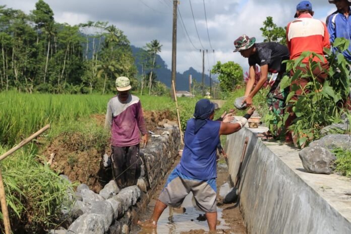 Malang, TMMD ke 126 – Proses pembangunan drainase di Dusun Krajan 2A, Desa Lebak Harjo, Kecamatan Ampel Gading, Kabupaten Malang, terus menunjukkan kemajuan signifikan. Personel Satgas TMMD, Praka Wahyu, bersama tim lapangan tampak fokus menyelesaikan pekerjaan dengan memperhatikan setiap detail teknis agar hasil konstruksi memiliki daya tahan dan fungsi optimal.