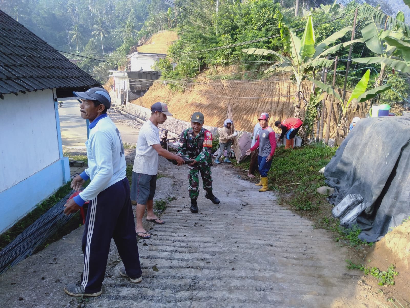 Lumajang, Dalam upaya meningkatkan kualitas hidup warga dan memperkuat semangat gotong royong di masyarakat, Babinsa Pronojiwo dari Koramil 0821/14 Pronojiwo Sertu Agus Lasto, melaksanakan kegiatan kewilayahan berupa karya bakti dengan membantu renovasi rumah milik Sumini, seorang warga kurang mampu yang tinggal di Dusun Kalibening RT 015 RW 003 Desa Pronojiwo, Kecamatan Pronojiwo, Kabupaten Lumajang, Jawa Timur, pada Jumat (17/5/2024).