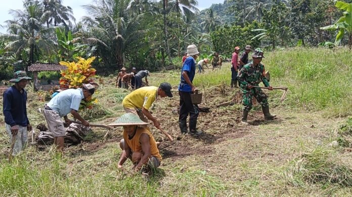 Sambut Ramadan, Babinsa Gondoruso Bersama Warga Bersihkan TPU Dusun Liwek