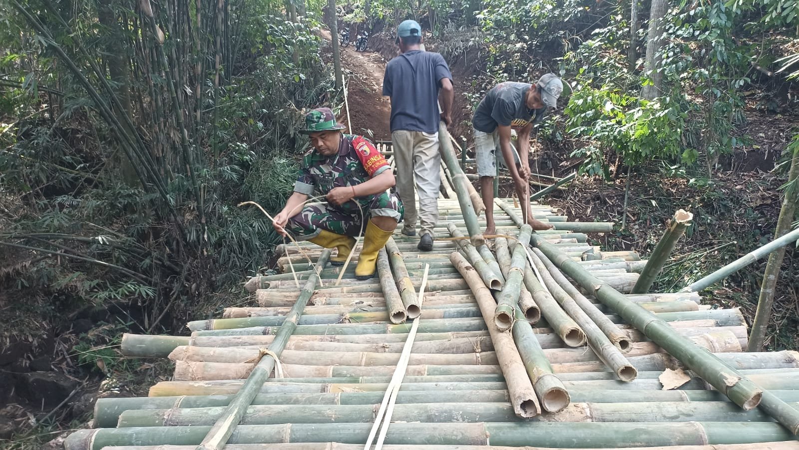 BerandaTNISemangat Gotong Royong Dusun Sekar Mulyo: Jembatan Bambu untuk Kesejahteraan Warga
