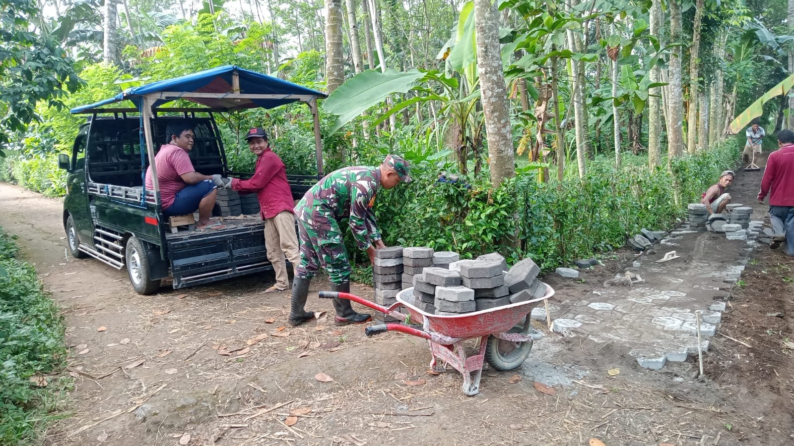 “Kegiatan ini selain mengawal pembangunan program pemerintah desa, juga bertujuan untuk membangun paving block yang ada di jalan dusun agar lebih maju, disamping itu dapat memberikan kenyamanan akses jalan warga dalam beraktivitas,” ujar Sertu Mujahidin.