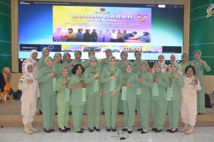 Lumajang – Dalam rangka Apel Bersama Wanita TNI dan peringatan HUT ke-62 Dharma Pertiwi Tahun 2026, dilaksanakan kegiatan donor darah serentak yang berlangsung di Aula Makodim 0824/Jember, Kamis (2/4/2026).