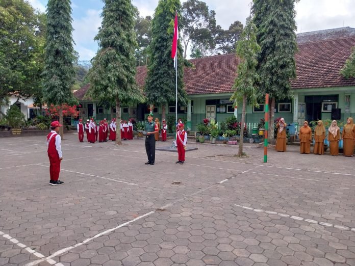 Dalam arahannya, Serda Muhaimin di hadapan 151 para siswa dan dewan guru menekankan pentingnya menumbuhkan rasa cinta tanah air dan nasionalisme pada anak-anak sejak dini.