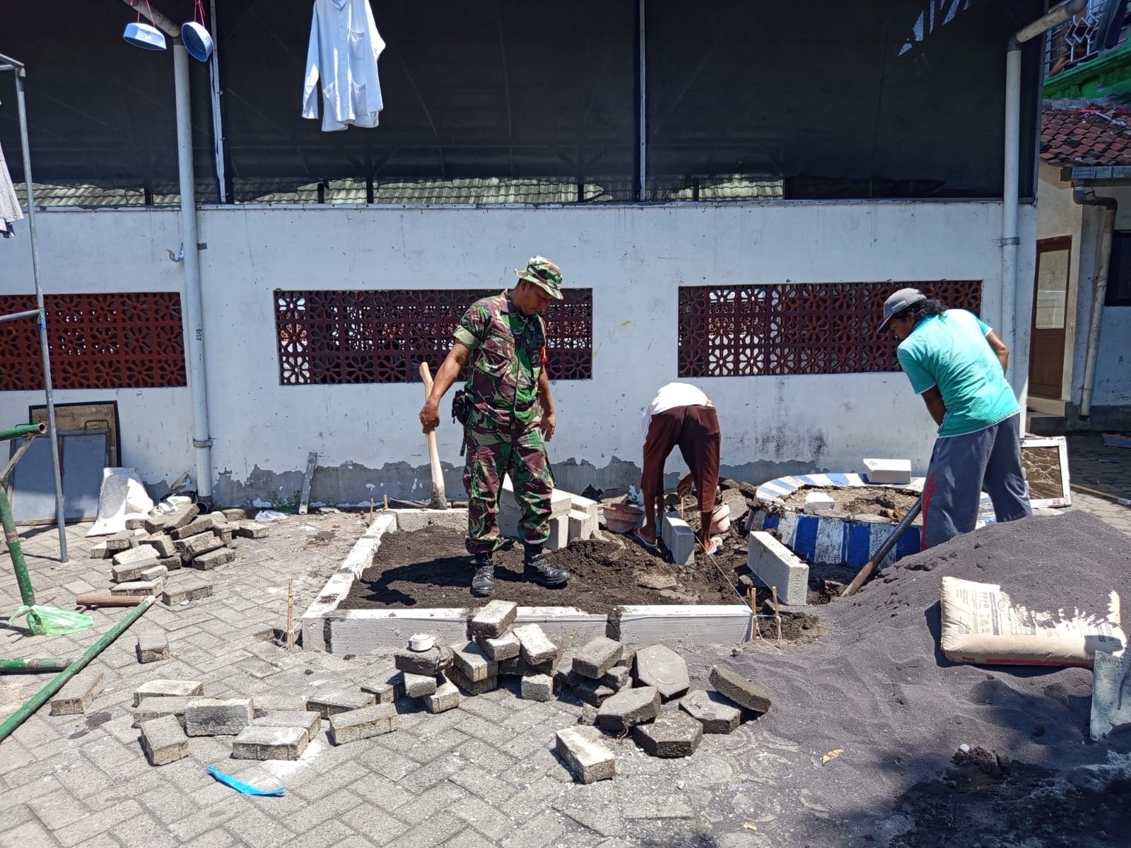 Kegiatan tersebut dilaksanakan bersama sekitar 10 orang warga yang turut membantu proses pembangunan sarana latihan fisik. Dengan penuh semangat gotong royong, Babinsa dan warga bahu-membahu menyiapkan tiang serta perlengkapan latihan yang nantinya akan dimanfaatkan oleh para santri untuk meningkatkan kemampuan jasmani.