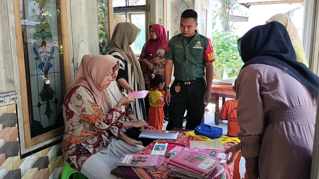 Lumajang, Babinsa Wates Kulon Koramil 0821-06/Ranuyoso, Koptu Muhammad Sofyan Hariyanto, turut serta dalam pendampingan dan monitoring pelayanan kesehatan Balita di Posyandu Curah Kates 1, Dusun Curah Kates RT 009 RW 013, Desa Wates Wetan, Kecamatan Ranuyoso, Kabupaten Lumajang, Jawa Timur, pada Senin (20/1/2025).