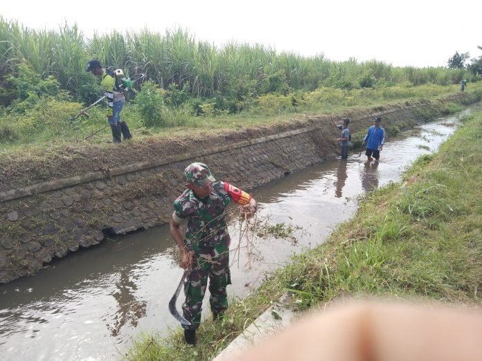 Lumajang, Dalam upaya menjaga kelancaran distribusi air pertanian, Babinsa Sumbersari Koramil 0821-16/Rowokangkung, Koptu Heru Suprayitno, bersama Himpunan Petani Pemakai Air (HIPPA) Desa Sumbersari melaksanakan kegiatan kerja bakti pembersihan saluran sekunder Blukon 3, di Dusun Bayur, Desa Sumbersari, Kecamatan Rowokangkung, Kabupaten Lumajang, Jawa Timur, pada Sabtu (21/6/2025)