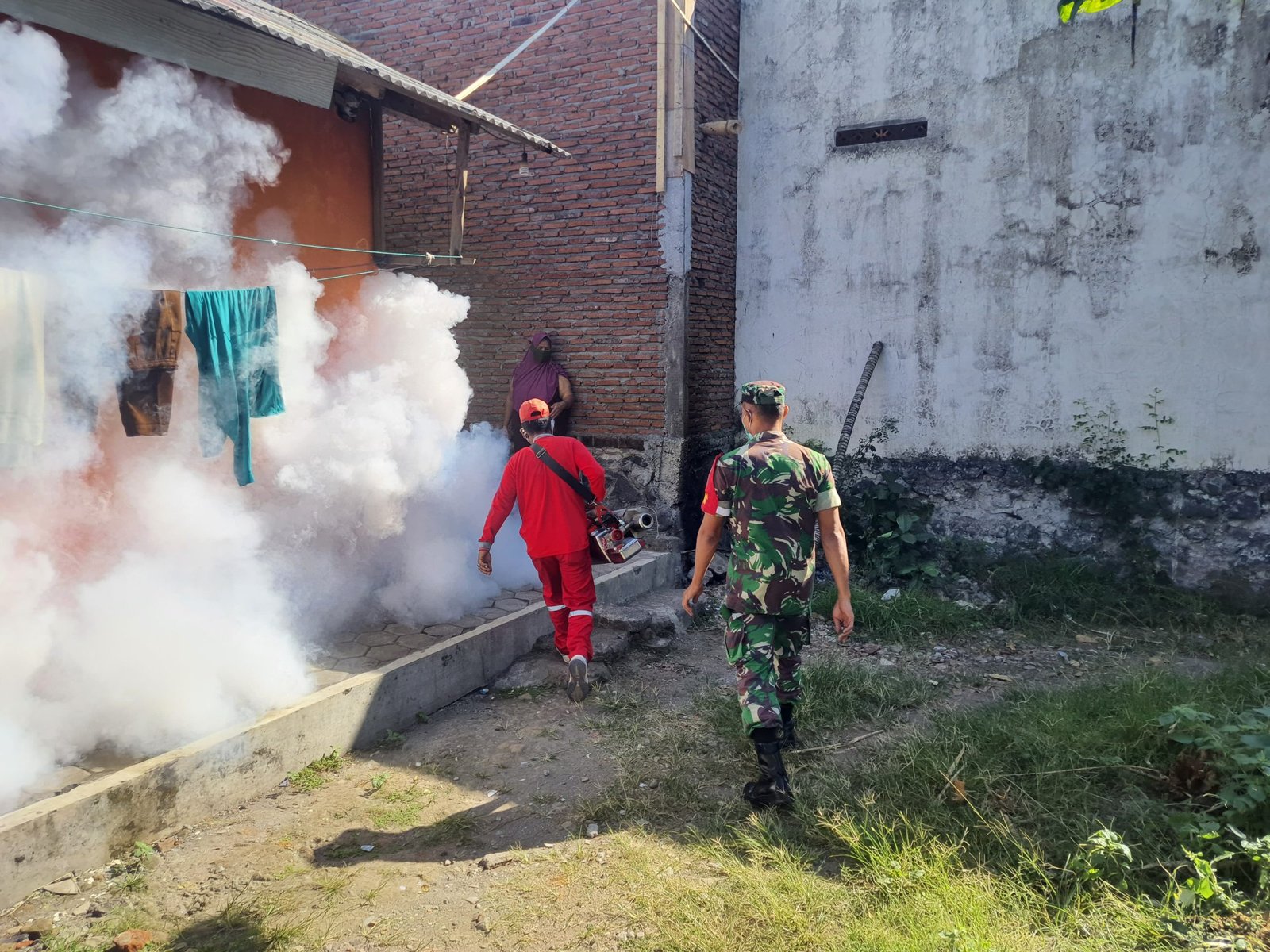 “Pendampingan fogging ini sebagai kolaborasi, dengan memberikan imbauan kepada warga untuk melakukan pembersihan terhadap tempat bersarangnya nyamuk, dengan langkah 3M, yakni Menguras, Menutup, dan Mendaur ulang barang bekas yang berpotensi menjadi tempat penampungan air,” kata Serka Heri Lesmono.