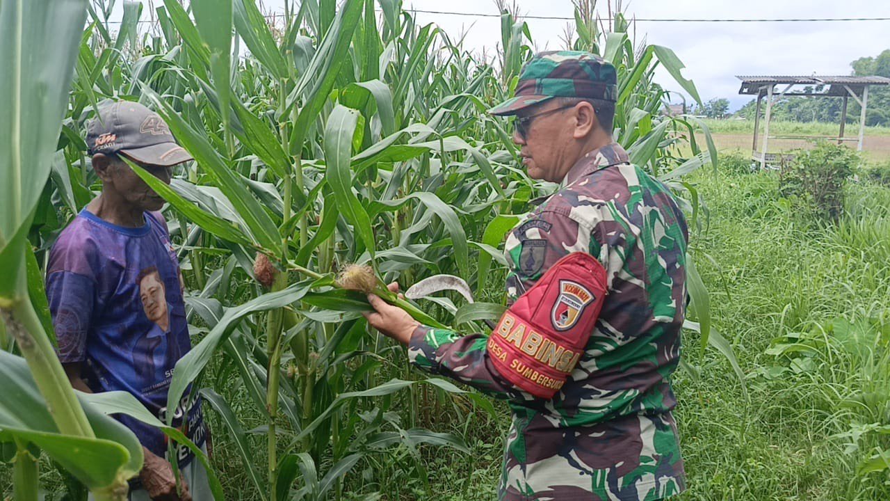 Lumajang, Dalam upaya meningkatkan hasil pertanian sekaligus memperkuat ketahanan pangan di wilayah binaan, Babinsa Sumbersuko Koramil 0821-19/Sumbersuko, Sertu Warsono, melaksanakan pendampingan perawatan tanaman jagung milik warga bernama Mansur seluas 0,2 hektare di Dusun Suko RT 002 RW 004, Desa Sumbersuko, Kecamatan Sumbersuko, Kabupaten Lumajang, Jawa Timur, Kamis (6/11/2025).