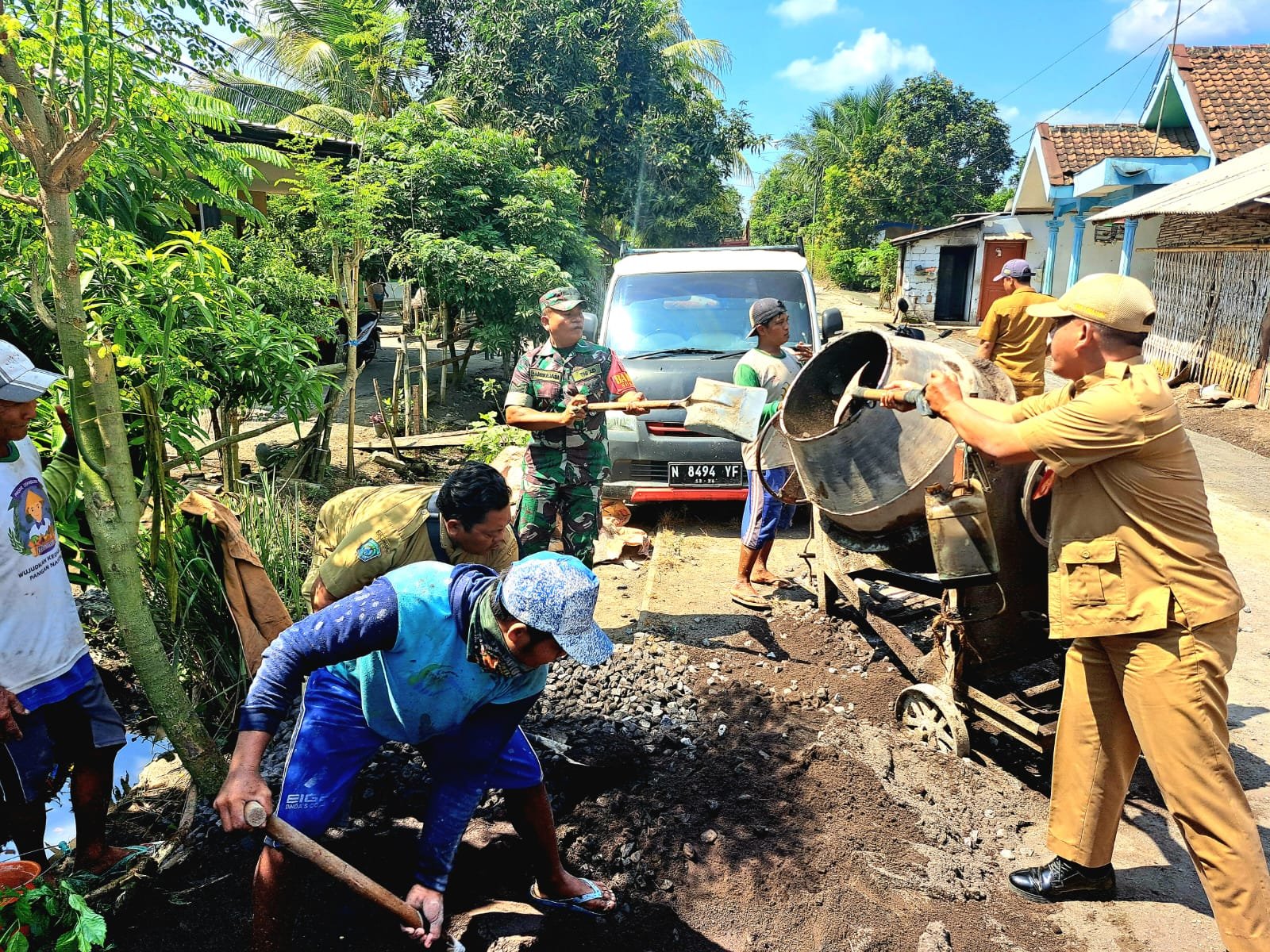 Lumajang, Bukti nyata Kemanunggalan TNI,  Babinsa Sukosari Koramil 0821/12 Jatiroto Serka Samsuliadi, bersama Pemdes dan warga melaksanakan karya bakti pelebaran jalan desa sepanjang 500 Meter, di  dusun pondok jaya  RT 001 RW 004 Desa Sukosari Kecamatan Jatiroto, Lumajang, Kamis (18/7/2024).