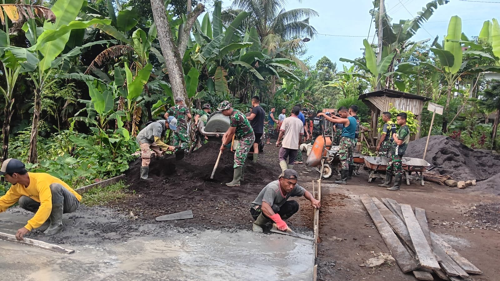 Serma Edy menyampaikan bahwa kegiatan tersebut merupakan wujud nyata kepedulian TNI dalam meningkatkan infrastruktur pedesaan demi kesejahteraan masyarakat. “Kami bersama warga bahu-membahu dalam pengecoran jalan ini agar akses antar dusun semakin mudah dan mempercepat mobilitas masyarakat dalam beraktivitas sehari-hari,” ungkapnya.