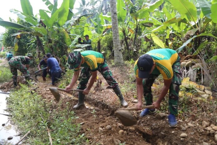Dengan semangat kebersamaan, para prajurit dan warga tampak bergotong royong menyempurnakan jalur galian di area yang dikelilingi tanaman produktif milik warga. Gotong royong ini mencerminkan komitmen nyata TNI dalam membantu pembangunan desa sekaligus mempererat hubungan antara prajurit dan masyarakat.