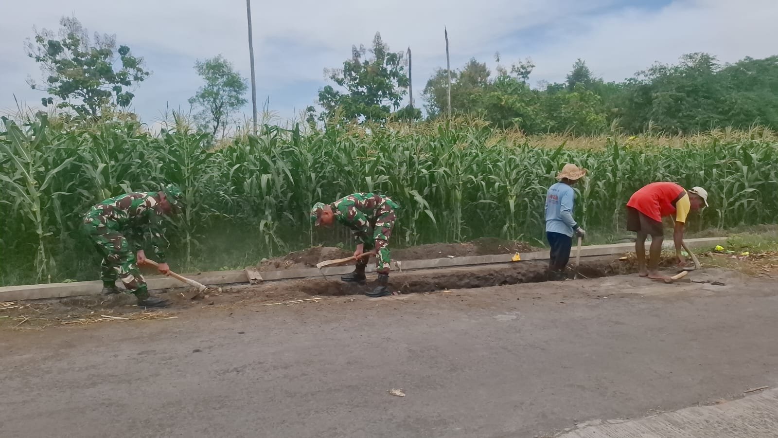 Lumajang, Wujud nyata kepedulian TNI terhadap pembangunan desa, Babinsa Jatimulyo Koramil 0821-13/Kunir, Serda Ary Agus Wulandono, bersama dua personel dan warga melaksanakan kegiatan kerja bakti pembuatan drainase di kanan-kiri jalan sepanjang 600 meter, tepatnya di Dusun Ampelgading RW 03, Desa Jatimulyo, Kecamatan Kunir, Kabupaten Lumajang, Jawa Timur, pada Jumat (11/7/2025).