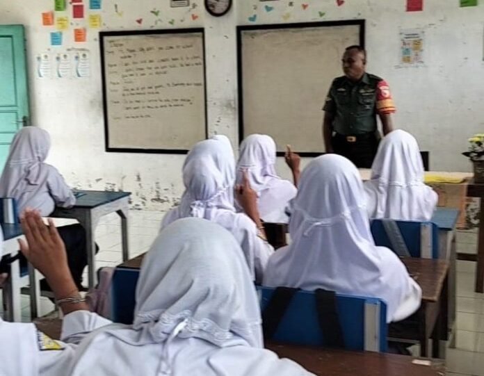 Lumajang, Suasana berbeda tampak Para pelajar terlihat antusias. Babinsa Selokgondang Koramil 0821-02/Sukodono, Serda Danny Sipasulta, hadir langsung untuk memberikan materi Wawasan Kebangsaan (Wasbang) dalam sesi pembinaan karakter pelajar, di ruang kelas VIII MTs Selokgondang Kecamatan Sukodono Kabupaten Lumajang, Jawa Timur, pada Selasa (18/11/2025).