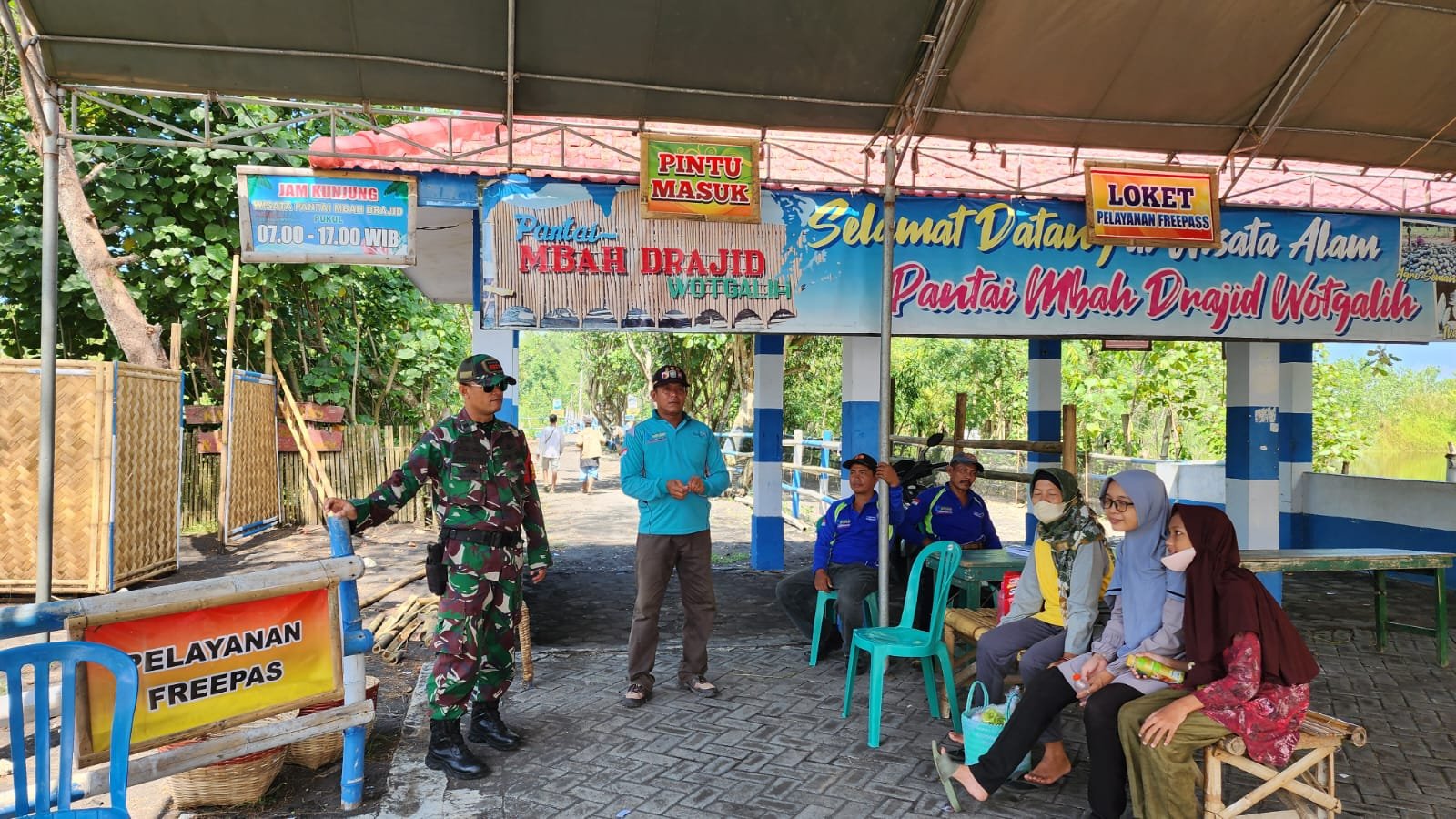 Lumajang, Dalam rangka memastikan keamanan dan kenyamanan para pengunjung, Babinsa Wotgalih Koramil 0821/11 Yosowilangun Peltu Guntur Purwanto, bersama dengan para stakeholder setempat, melaksanakan pemantauan aktif pada H+4 liburan Idulfitri di Objek Wisata Pantai Mbah Drajit Wotgalih Desa Wotgalih Kecamatan Yosowilangun Kabupaten Lumajang, Jawa Timur, Minggu (14/4/2024).