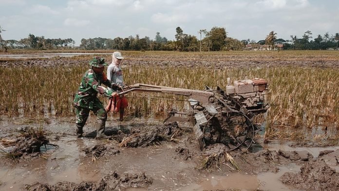 Lumajang, Dalam upaya meningkatkan produktivitas pertanian, Babinsa Randuagung, Koramil 0821-07/Randuagung, Serda Mista Kusnadi, turut serta melaksanakan pendampingan pengolahan lahan sawah milik Muhammad salah satu anggota Poktan Candi diDusun Krajan, Desa Randuagung, Kecamatan Randuagung, Kabupaten Lumajang, Jawa Timur, pada Jumat (20/12/2024)