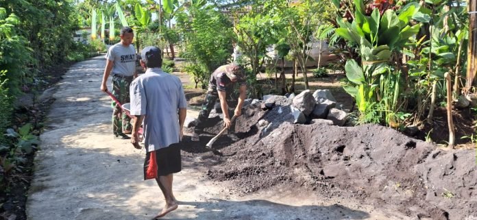 Lumajang, TMMD ke-123, Di tengah suasana bulan suci Ramadan, semangat gotong royong tetap menyala dalam kegiatan renovasi Rumah Tidak Layak Huni (RTLH) milik Bapak Tukimin di Desa Burno, Kecamatan Senduro, Kabupaten Lumajang. Kegiatan tersebut dipimpin oleh Praka Ikhsan bersama empat anggota Kodim 0821/Lumajang dan masyarakat setempat. Kamis(6/3/2025)